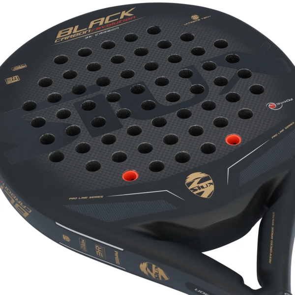 La pala de pádel Siux Black Carbon Revolution 3K está hecha con materiales de primera calidad y proporciona amplias tecnologías, así como un diseño llamativo para destacar en la pista.La pala de pádel Siux Black Carbon Revolution 3K cuenta con un molde redondo y un punto dulce amplio que brinda una mejor defensa en la pista. Su balance es medio-alto, por lo cual aporta un gran equilibrio entre fuerza y control. Además, su goma EVA blanda EHR proporciona mejores sensaciones y una gran comodidad. En cuanto a su estructura, el marco posee una fusión con carbono y fibra de vidrio que brinda una gran resistencia, así como una alta durabilidad.